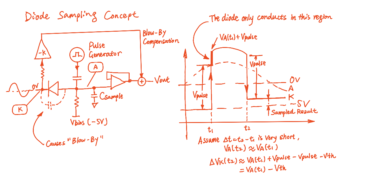 Instead of using MOSFETs, engineers of that era exploited the junction of a Schottky diode as the switching element. By controlling diffusion duration and doping levels, researchers in the early 1970s could already fabricate junctions only nanometers thick, achieving very high switching speeds even with relatively primitive fabrication technology. When the diode is forward-biased, it conducts and charges the hold capacitor; when reverse-biased, it stops conducting and isolates the stored charge. [HP Diode]