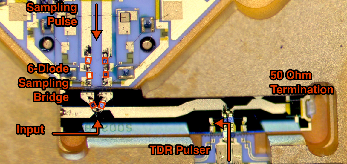 Unbelievably, Tektronix continued refining this same fundamental design—with improved components and transmission line technology—all the way through the TDS8000 series sampling heads. The core concept remained unchanged for more than 30 years! In later years, other implementations of the “two-chef” concept emerged using SiGe and GaAs integrated technologies. One notable example is the Rapid Automatic Cascode Exchange (RACE) circuit, capable of capturing signals up to 150 GHz as early as 2008.