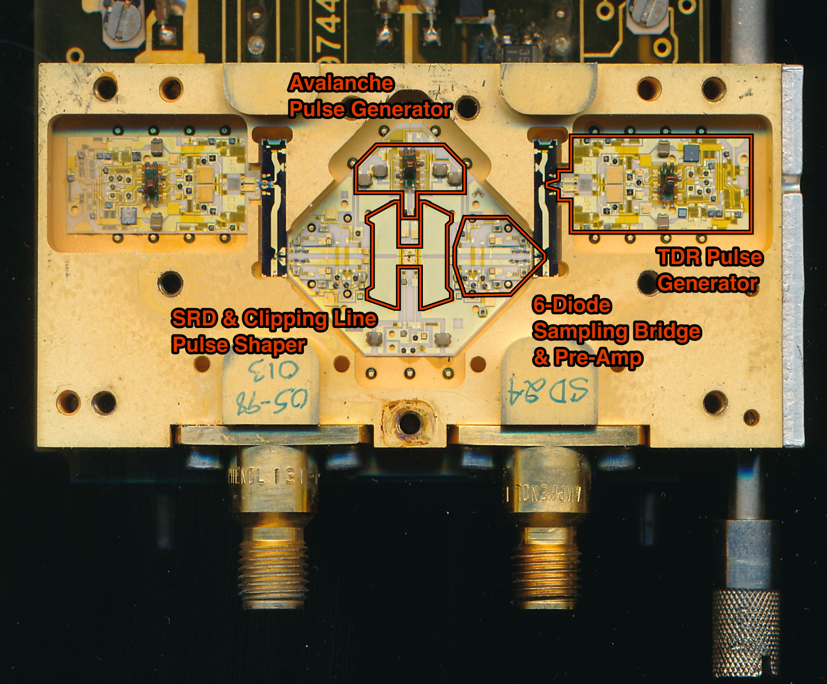 The Tektronix SD series is a family of sampling heads for the 11800 series mainframes. These sampling heads are capable of capturing extremely high-frequency signals, with bandwidths ranging from 2.5 GHz (SD-14) to 50 GHz (SD-50). I'm amazed by the fact that engineers were able to achieve such high performance using the semiconductor technology available in the 1980s and always want to learn more about it, and eventually build one myself for fun. Starting from this article, I will present a detailed reverse engineering of the SD-24 sampling head, which has a bandwidth of 20 GHz and a built-in pulse generator capable of producing extremely fast edges for Time Domain Reflectometry (TDR) applications.